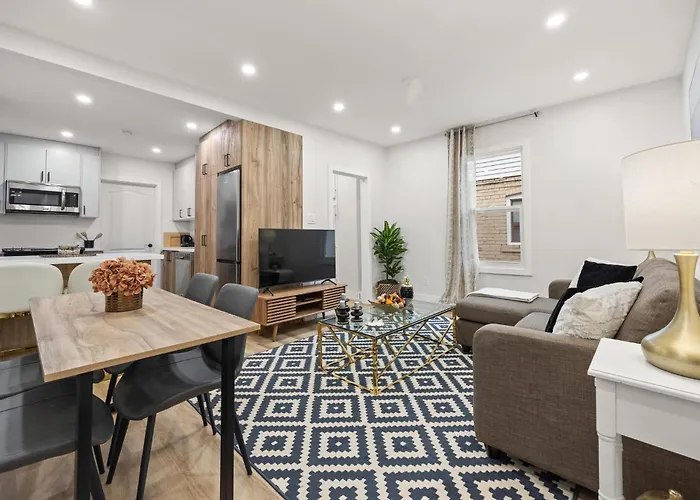 Situé à moins de 7 km du Marché St. Lawrence, Appartement Private House With Parking & Steps To Subway de 65 m^2 dispose d'un parking privé pour ceux qui voyagent en voiture. Cette facilité assure une solution pratique pour garer les véhicules des visiteurs pendant leur séjour. À moins de 10 minutes à pied de la station de métro Coxwell, l'appartement est à 7 km du Musée royal de l'Ontario.